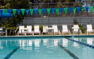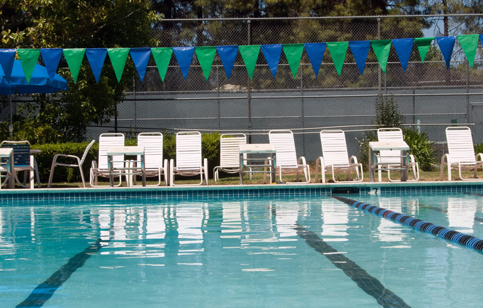 Boasting a large 6-lane pool, our swimming facilities are open all year and available for recreational or competitive use. Our pool is 25 yards and is heated to 82 degrees year round. With a 1-meter diving board in the deep end, and a kid-friendly 3-foot area in the shallow end, our pool is a good fit for swimmers of all ages